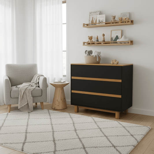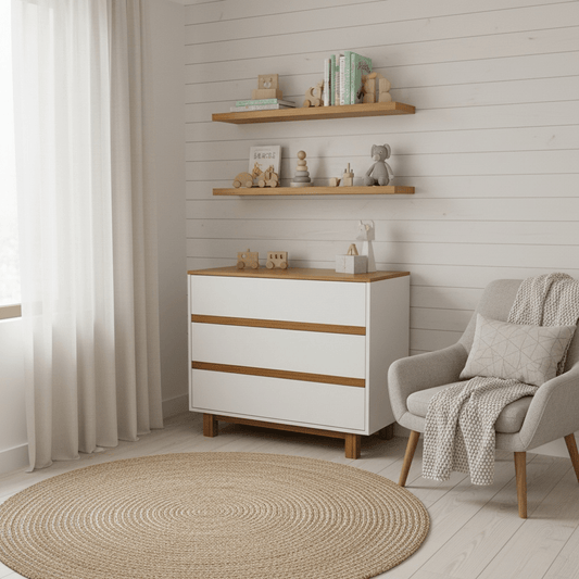 Unsere Babymöbel aus Holz sind langlebig, ökologisch und zeitlos im Design. FSC-zertifiziertes Holz sorgt für eine nachhaltige Produktion, während die Kombination aus Weiß und Naturholz ein modernes und gleichzeitig gemütliches Ambiente schafft.