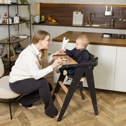 Vilha Babyhochstuhl HOKU klappbar aus Massivholz graphit/natur